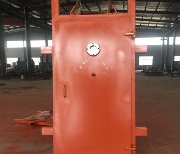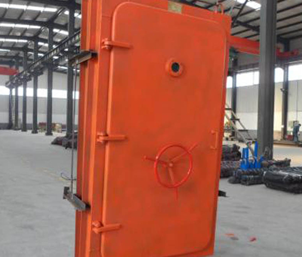 避難硐室門用于煤礦井下避難硐室過渡室與生存室之間。保護硐室內(nèi)人員安全(一套兩扇)。向外開啟,起到能防水、防火、防沖擊波的作用。